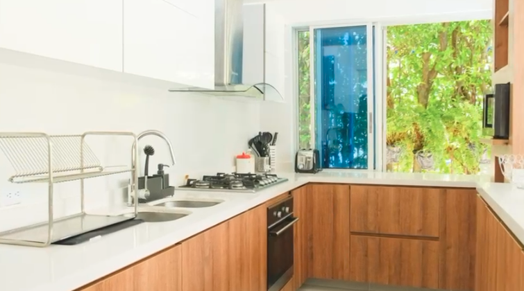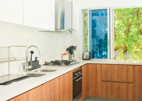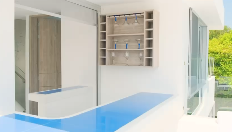 Acogedora sala de TV, sala y comedor integrados con vista única, baño social y amplia cocina abierta muy bien dotada. En el segundo nivel, encontrarás una terraza con bar para reuniones con amigos.